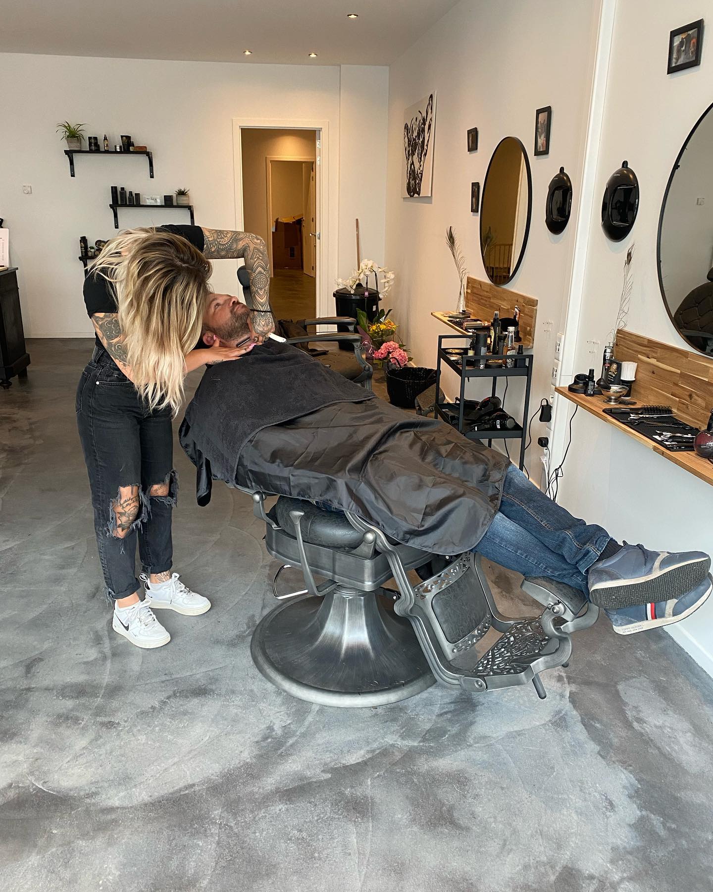 "Wij zijn een Barbershop gelegen in hartje brasschaat. Barbers met een passie voor haar en baard, samen bespreken we met u om tot het perfecte en het gewenste resultaat te komen. Wij knippen zowel heren/dames/kinderen,.. In een gezellige ongedwongen sfeer met een koffie of een pintje, en waar ook Franse Bulldogs Babs & Luci aanwezig zijn. De mascotte’s van de shop, die graag gezien zijn door velen. We heten iedereen welkom in onze gezellige shop, tot snel! Yana, Niels, Xenia & Bodhi